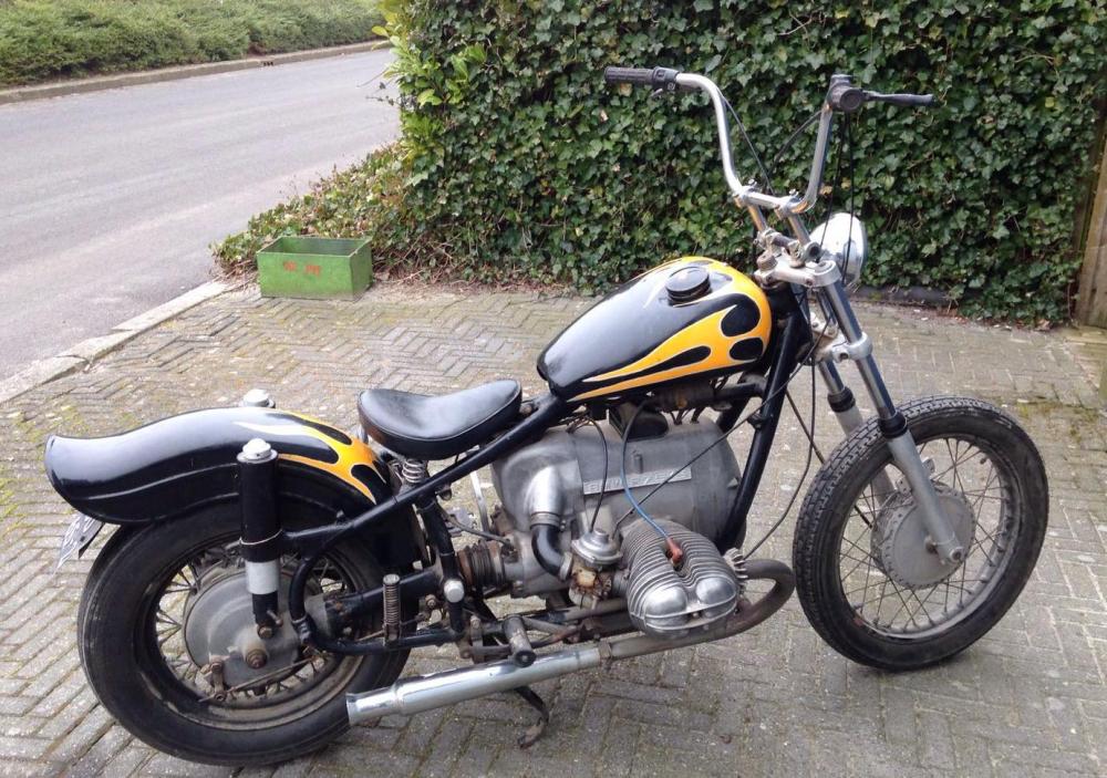R50, chopper. Schuurvondst uit Friesland. Nu al met een mooie jaren 60 caferacerlook. Update 2022: verkocht en de bmw is weer terug naar Friesland. Rijdt nu in de buurt van Heerenveen rond.