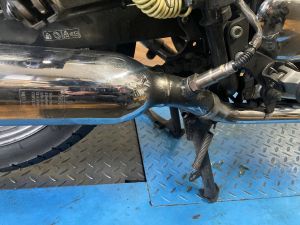 Triumph Bonneville met Shark uitlaat. Rvs met losse db- killers.